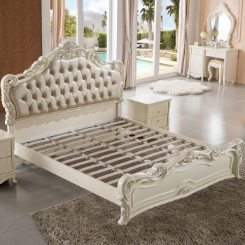 • 商品名称:贝黎诗 欧式双人床1.8米 法式田园公主床 实木高箱床1.5米 卧室家具 8802床真皮雕花床尾框架