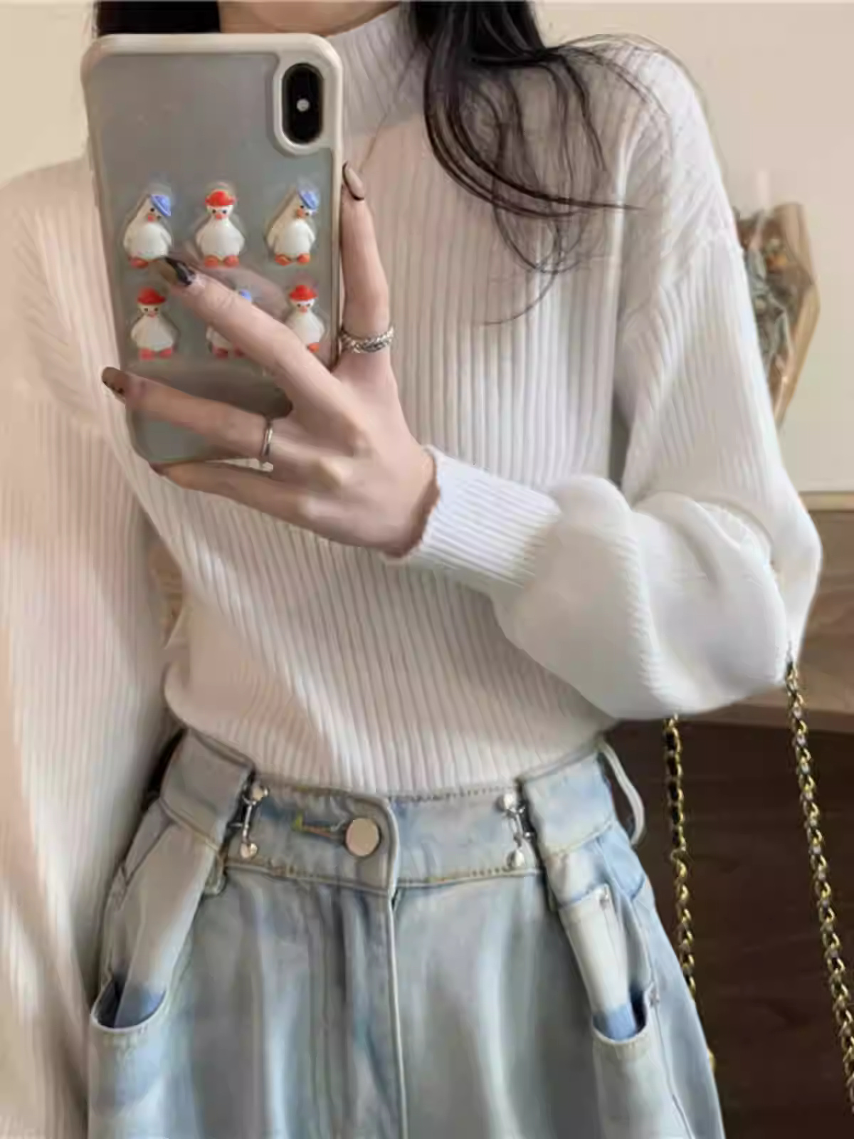 • 商品名称:2025新款秋季内搭半高领打底针织衫毛衣女大码胖妹妹修身显瘦上衣