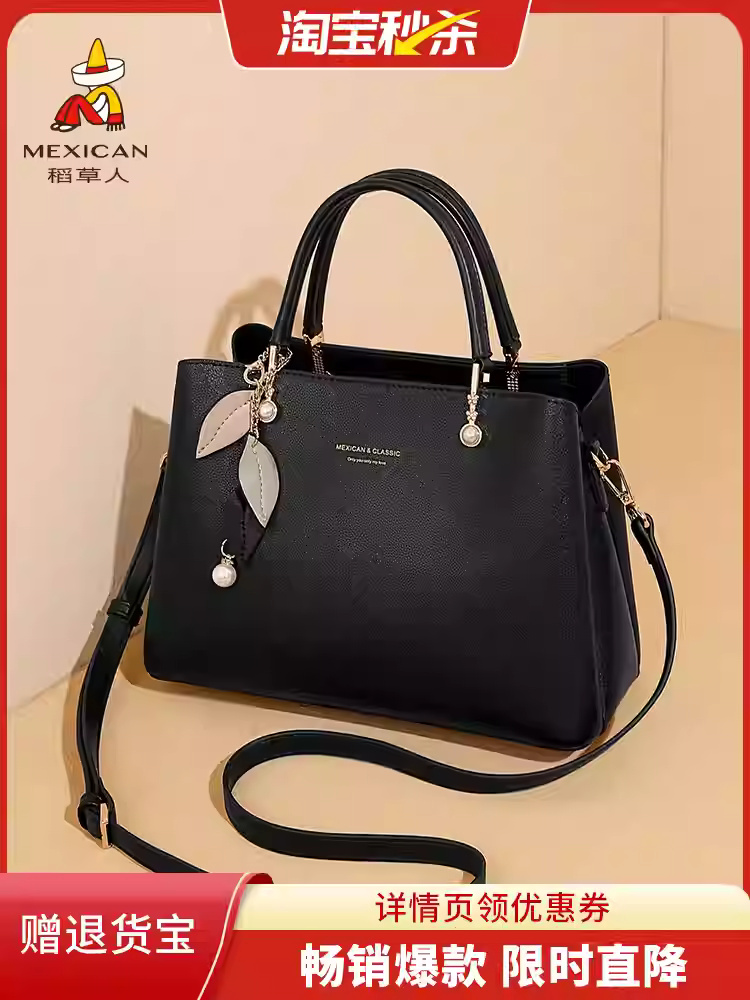 稻草人包包女新款手提包大容量妈妈包礼物百搭真皮斜挎包通勤女包