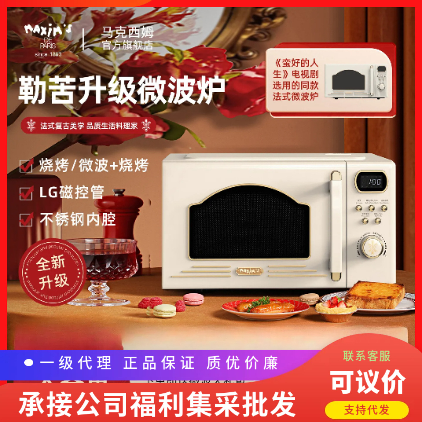• 商品名称:马克西姆勒芒升级微波炉家用小型迷你红绿白色复古转盘式微烤一体